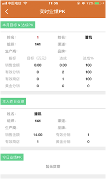 登录智店,查看 "实时业绩"昨日业绩和月目标完成进度,简短快速和同事分享跑店经验