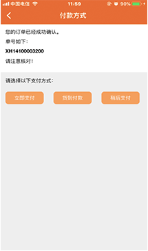 选好到货时间,确定明天到货。小明轻点“立即下单”,后台将收货单号XH11100008888也显示出来,嘱咐王叔按单号收货后,小明点“离店”完成,出发继续下一家拜访。