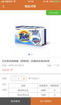 接着,小明打开“抢促销”,将本月小店“买3送5”活动介绍给王叔,图文并茂、内容详实,王叔合计很划算,决定要3件,小明轻点一键加入购物车,轻轻一点“去结算” ,订单库存确认、促销赠品,价格统统都算好了。